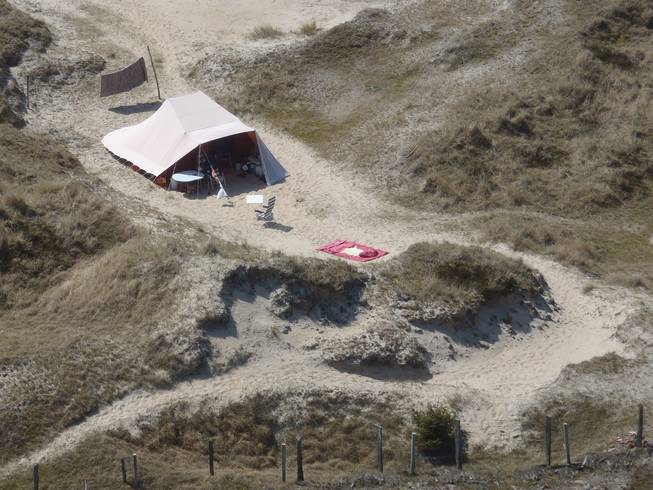 Zelt in der Großdüne (Blick vom Leuchtturm Amrum) |