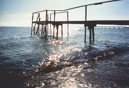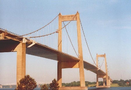 Steg bei Nyborg Camping, Storebaetbrücke im Hintergrund |