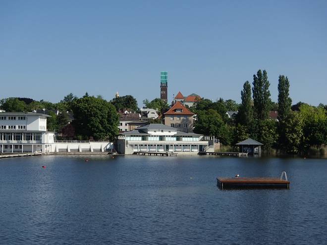 Großer Woog / Naturfreibad Großer Woog / Hochzeitsturm |