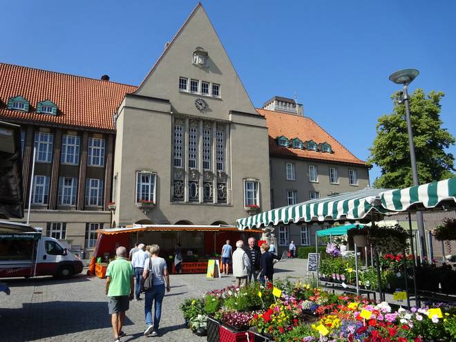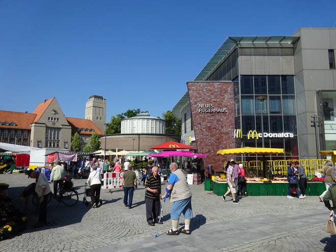 Rathausmarkt Neues Fitgerhaus Markthalle Rathaus Wasserturm |