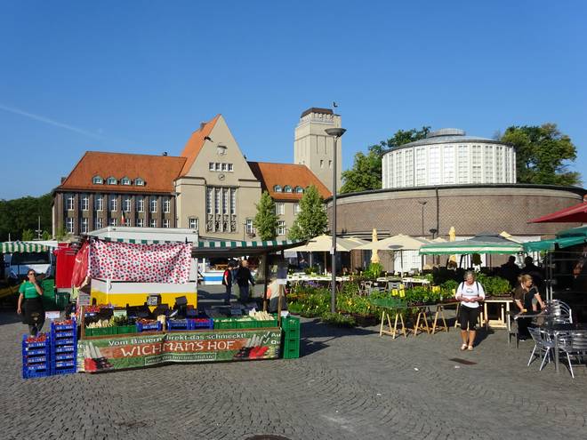 Rathausmarkt Markthalle Rathaus Wasserturm |