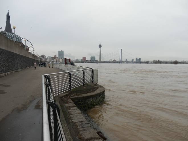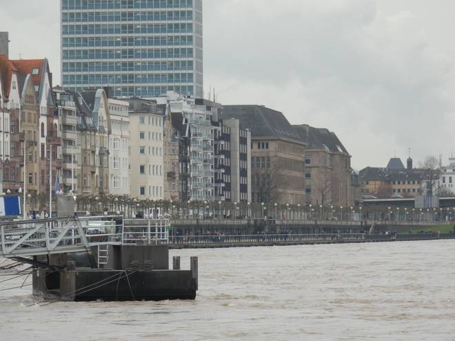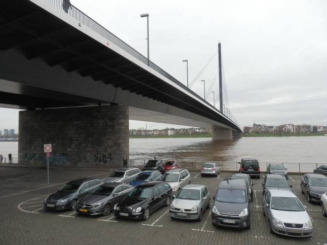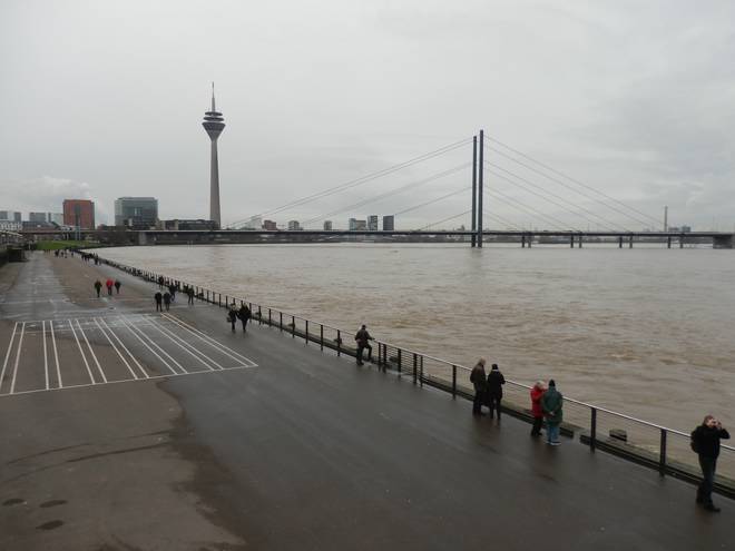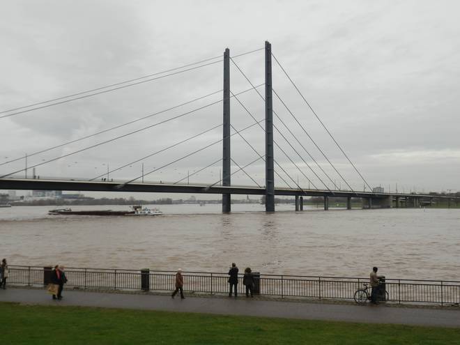 Rheinpegel Rheinwerft Oberkasseler Brücke Rhein |
