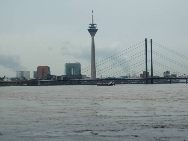 Rheinufer Rheinturm Rheinkniebrücke Rhein |
