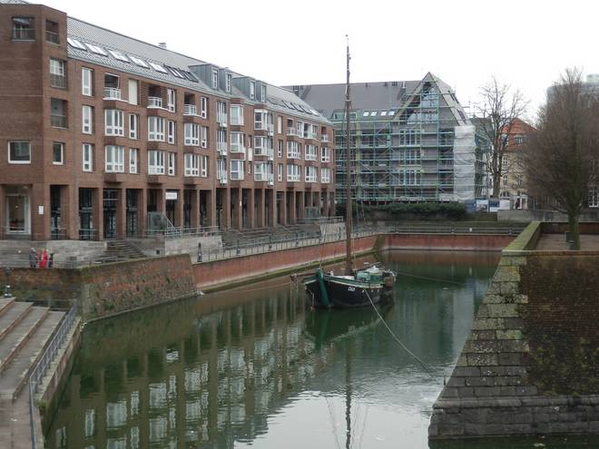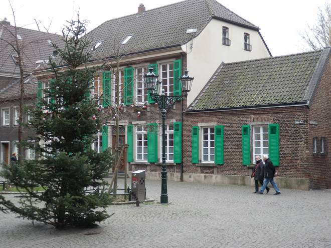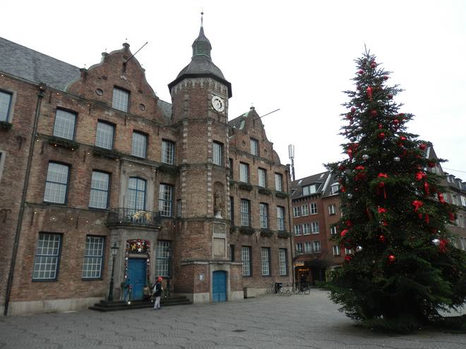 Basilika St. Lambertus Schloßturm Burgplatz Rheinpegel Rheinwerft |