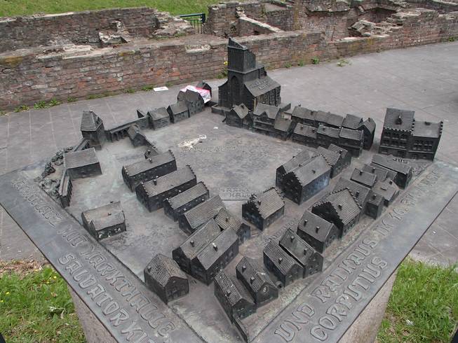Modell Rathaus und Salvatorkirche im 16. Jahrhundert |