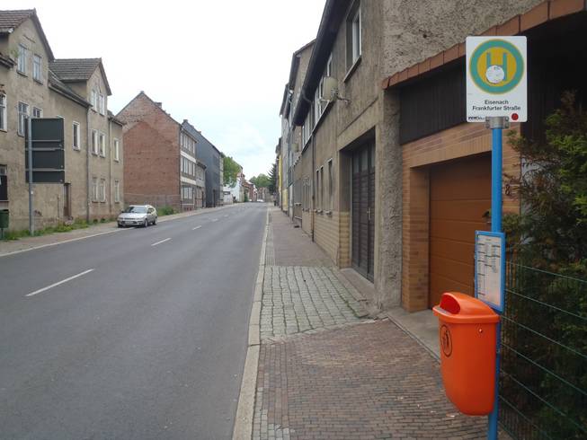 Frankfurter Straße / Eisenach Natürlich kann man von Eisenach auch zum Rennsteig laufen (das macht man beim Supermarathon des Rennsteiglaufes auch), aber zwei Tage vor meinem 72,7-Km-Lauf nahm ich doch lieber den Bus. |