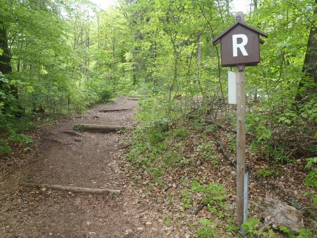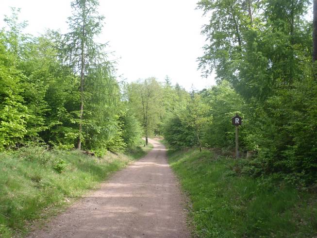 Vachaer Stein / Rennsteig Diesen Schildern mit dem "R" gilt es zu folgen. Oder auch einem an den Baum gemalten "R". Verlaufen ist eigentlich unmöglich. |