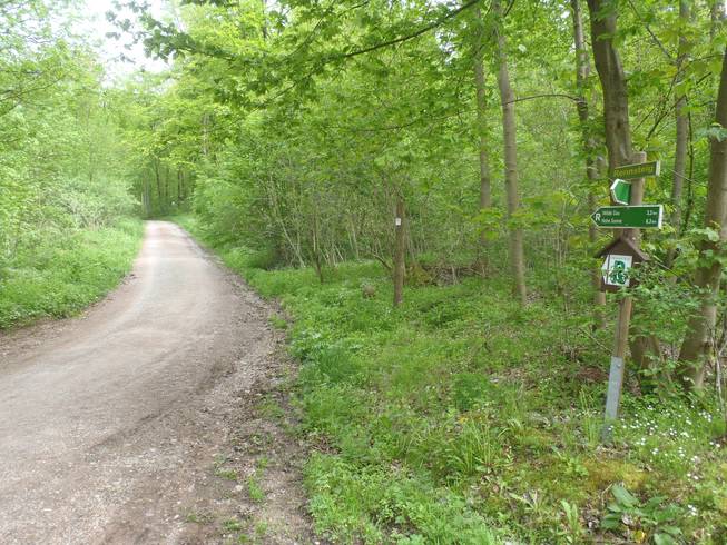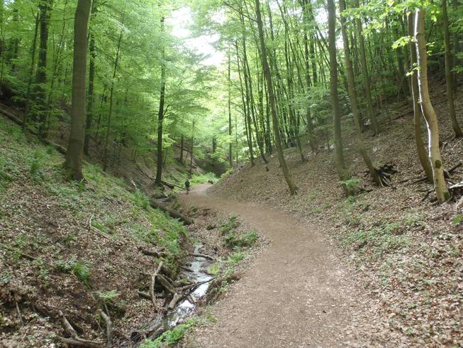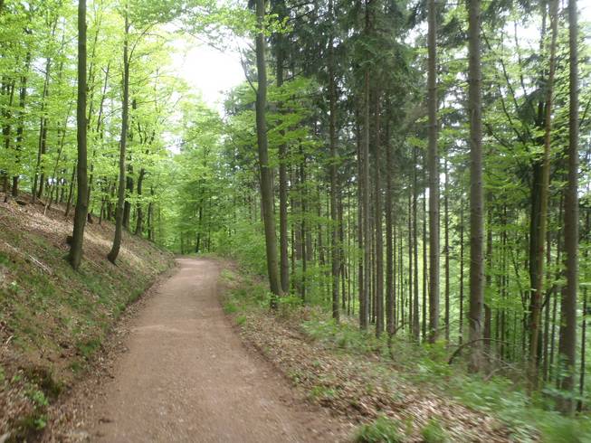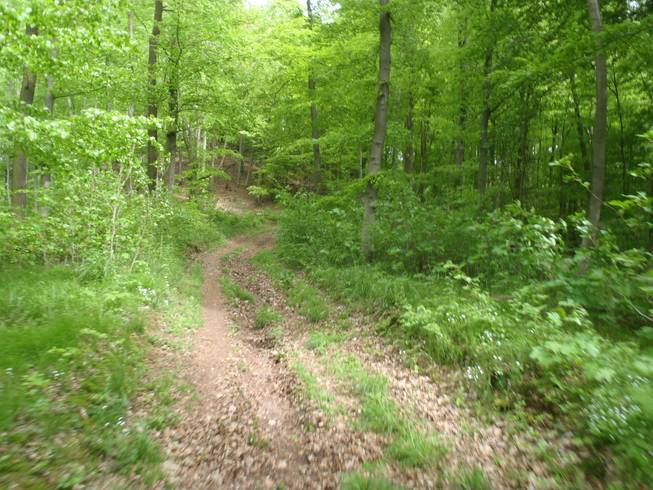 Wilde Sau Radweg rechts flach und breit, Wanderweg links rauf und schmaler werdend. |