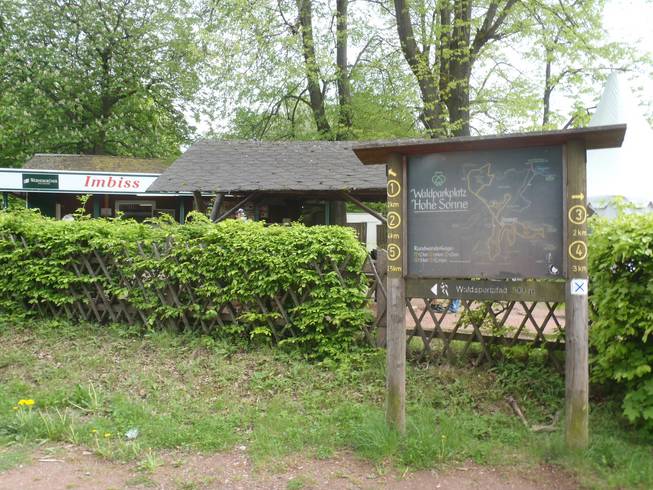 Hohe Sonne Hier gibt es einen Kiosk, das Zusammentreffen mit der B19 aus Eisenach und den Abzweig zur Drachen-schlucht. Bis hier war ich 6,24 Km unterwegs. 5:51 Min/Km. Und war ziemlich kaputt. Bei schwülen 23°C lag es sicher auch am Wetter. Vor den 72,7 Km zwei Tage später graute mir nun allerdings mehr als zuvor. Und das soll etwas heißen. |