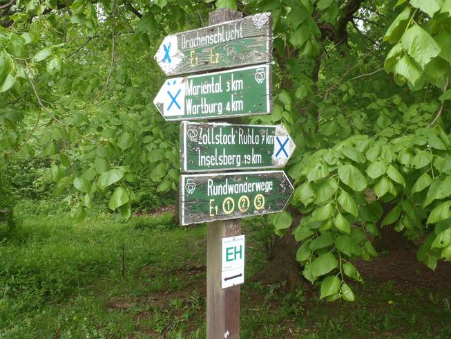 Vachaer Stein / Rennsteig Und hier ging es dann los. Natürlich gleich mal bergauf. Mein Plan: bis Hohe Sonne dem Rennsteig folgen und dann durch die Drachen-schlucht runter nach Eisenach. |