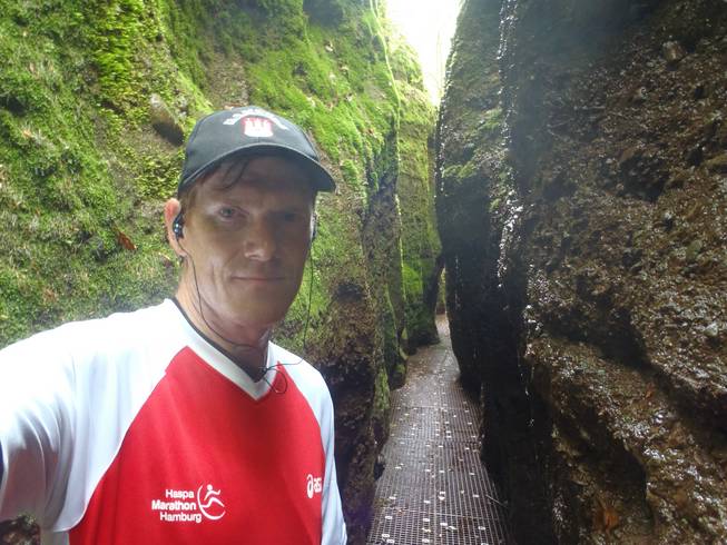 Drachenschlucht 3015 Meter und 220 Höhen-meter später war das Süd-portal der Schlucht erreicht. Das Tempo für die Strecke lag bei 7:35 Min/Km! |