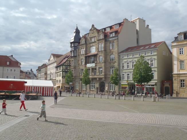Markt Trotzdem fand ich recht schnell bekanntes Gebiet. Zumindest vom Stadtplan her. Diese Lauf war meine erste Tat nach der Ankunft in Eisenach. |