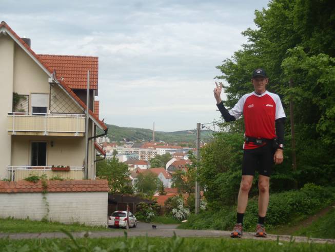 Kleine Neustadt Die letzten Meter ging es dann noch einmal richtig steil bergauf. Wie kann man auch nur ein Quartier am Hang wählen?? Da brach dann auch das zum Schluß flotte Tempo (5:10 Min/Km) ein. |