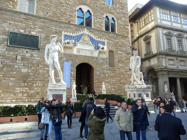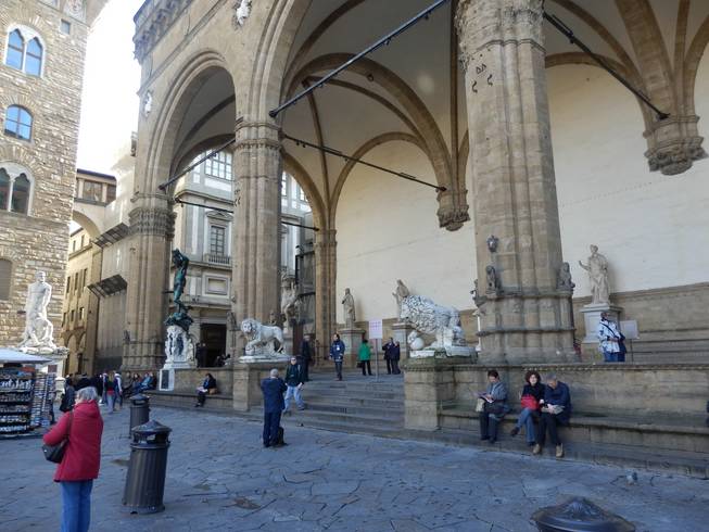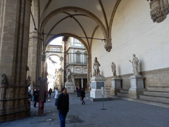Le statue allineate davanti a Palazzo Vecchio |