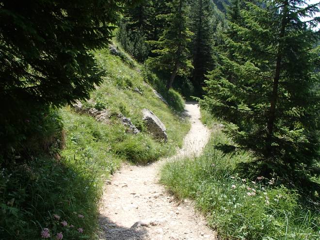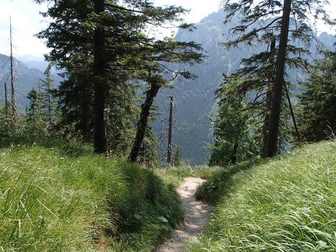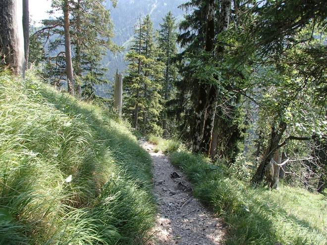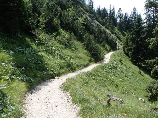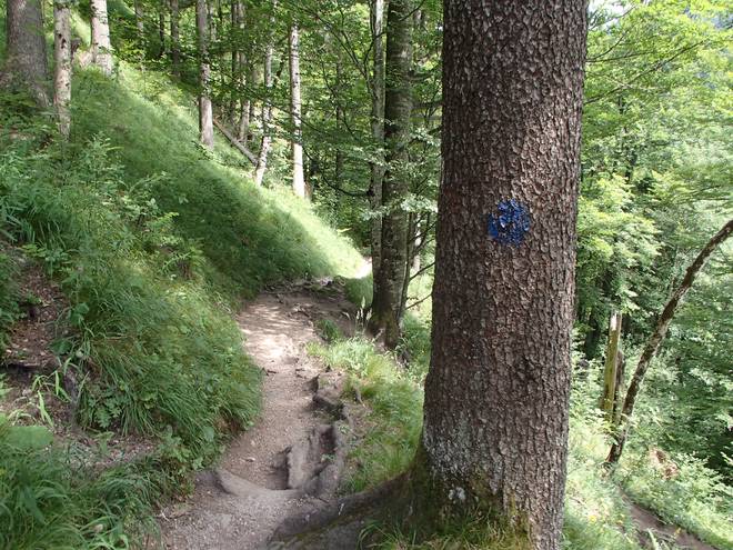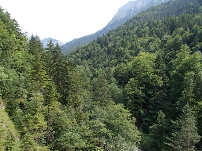 Tegelberg Im Tal konnte ich schon das Wasser aus der Pöllatschlucht hören. So sehr weit konnte es nicht mehr sein. |