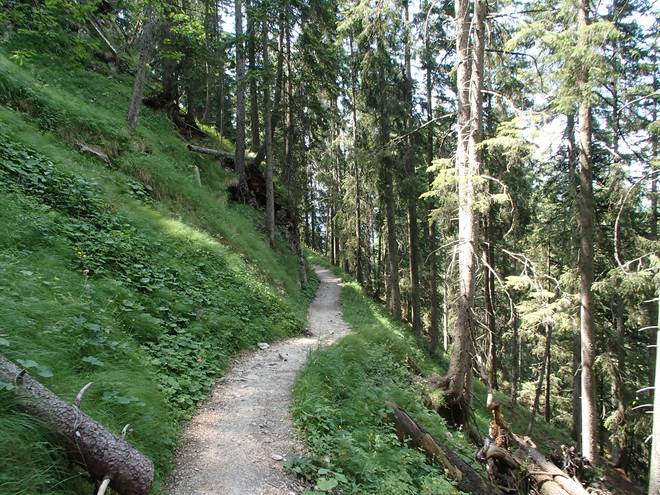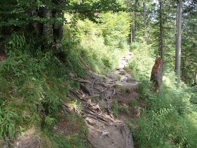 Tegelberg Mit Laufen war weiterhin kaum etwas. Mal ein paar flottere Meter, dann rutschte man schon wieder auf irgendetwas aus oder wurde durch Wurzeln aus dem Tritt gebracht. |