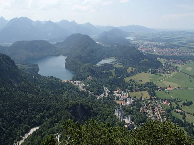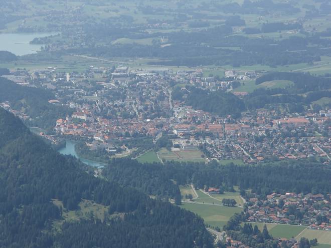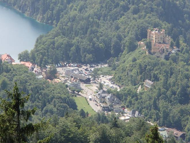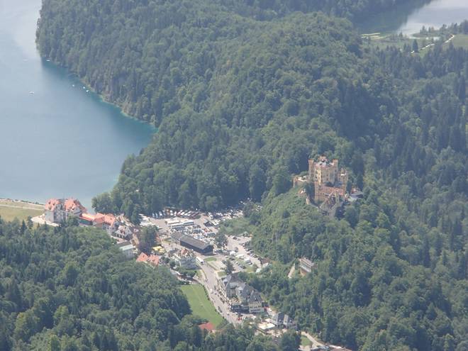 Alpsee Schwansee Füssen Hohenschwangau Schloß Neuschwanstein 14.44 Uhr 37 Minuten war ich nun schon unterwegs und schaute immer noch aus der Vogelperspektive auf meine Ziele hinab. |