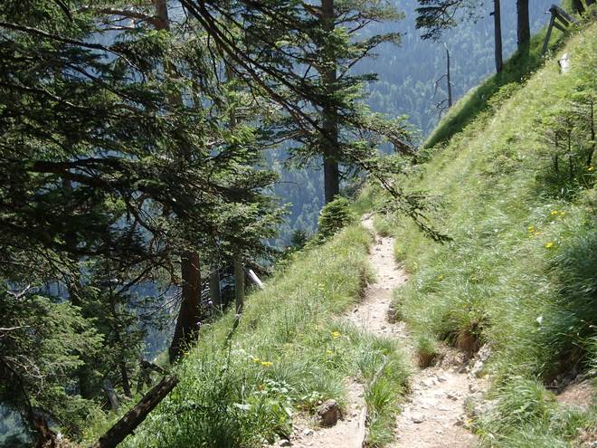 Tegelberg Und wieder so ein Abhang. Wenn im Wanderführer etwas von Trittsicherheit erforderlich steht, dann sollte man das auch glauben. |