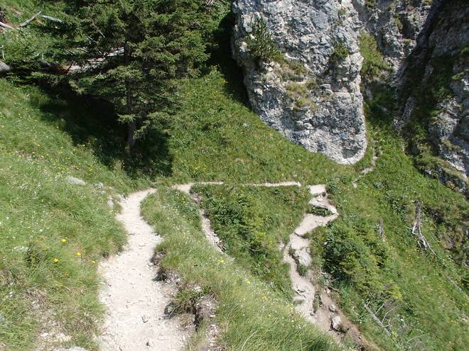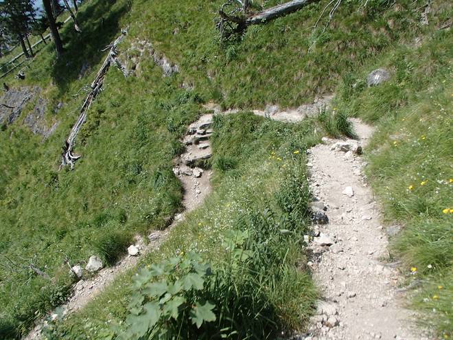 Tegelberg Und es ging hier links weitaus steiler und tiefer hinab als es auf dem Foto den Eindruck macht. |