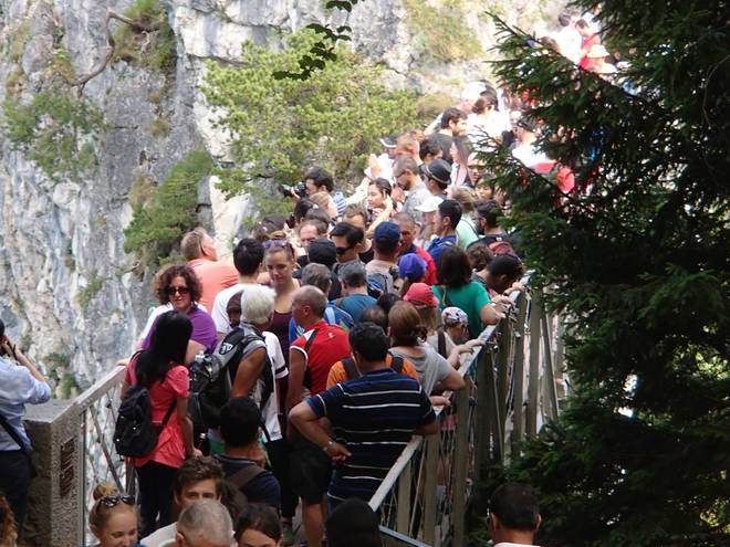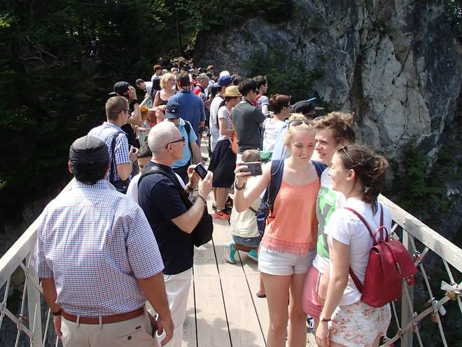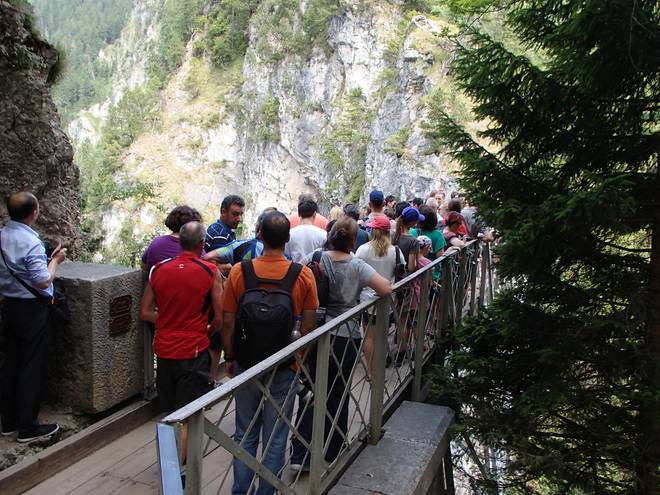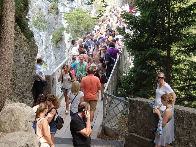 Marienbrücke Die Brücke befindet sich 90 Meter über der Pöllatschlucht. Das ist definitiv auch nur für Schwindelfreie. Und bei dem Gedrängel darf man auch keine Angst vor Menschenmengen haben. |