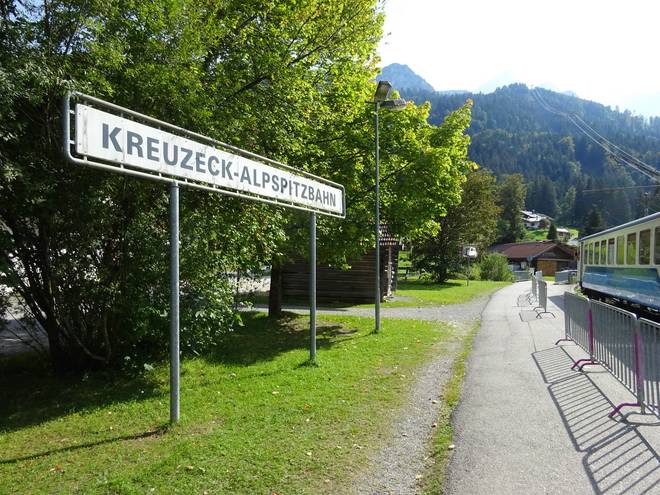 Bahnhof Kreuzeck-Alpspitzbahn 15.22 Uhr Nach neun Minuten Bahnfahrt ab Garmisch-Partenkirchen erreichte ich die Tal-Station der Alpspitzbahn. Der Zug fährt normalerweise weiter auf die Zugspitze. Nun am Nachmittag endete der Zug in Grainau. |