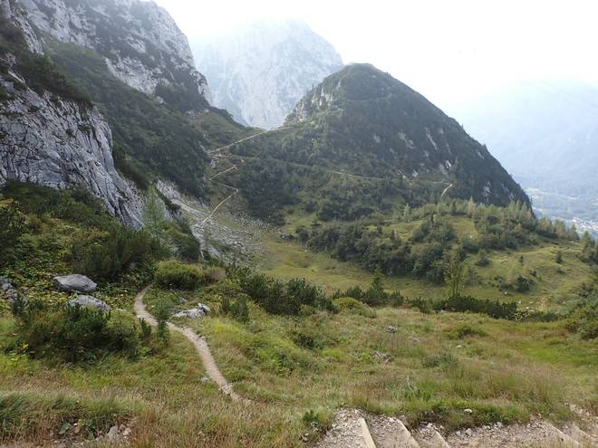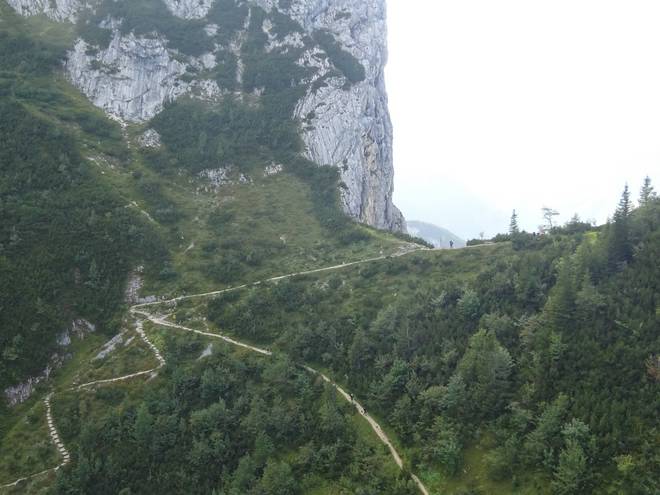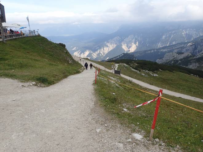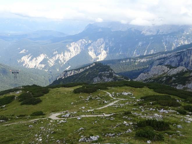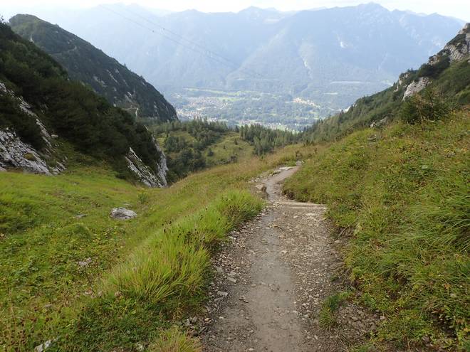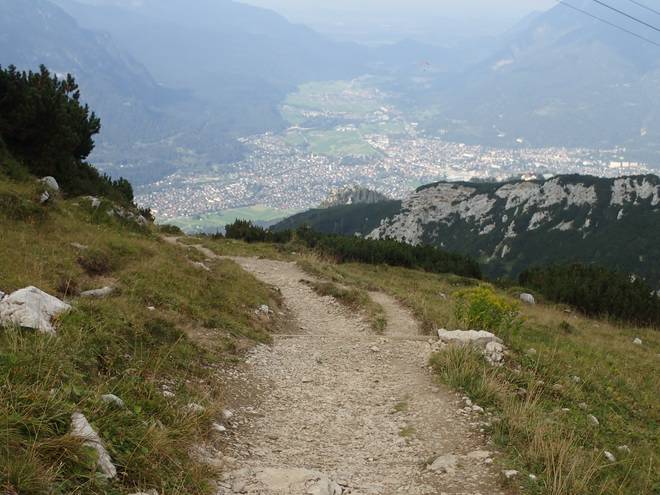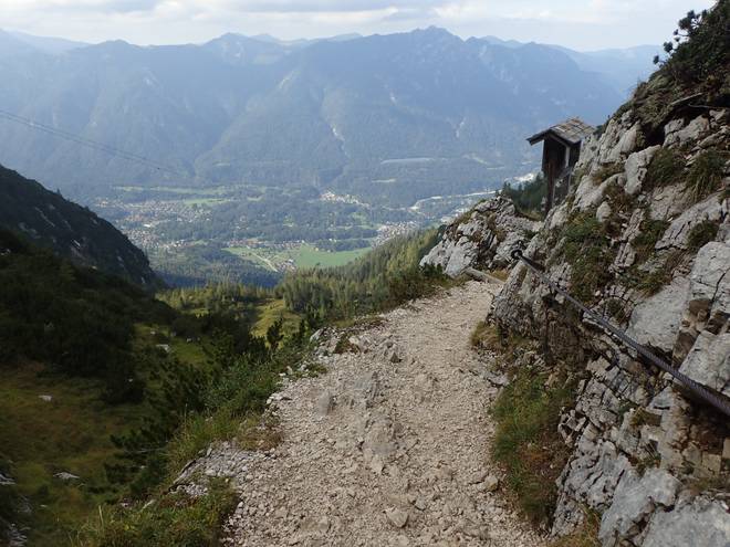 Alpspitzbahn 15.48 Uhr Auch das da unten würde mein Weg sein. Und zwar ganz links der Serpentinen-Weg. |