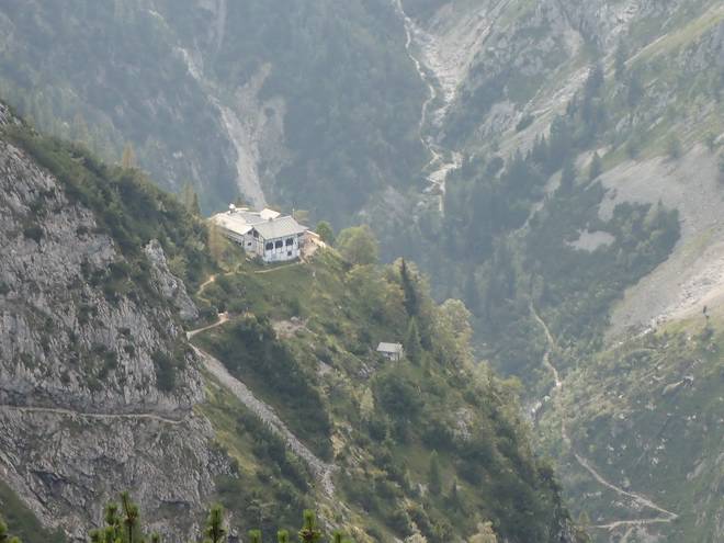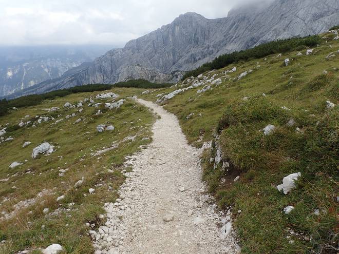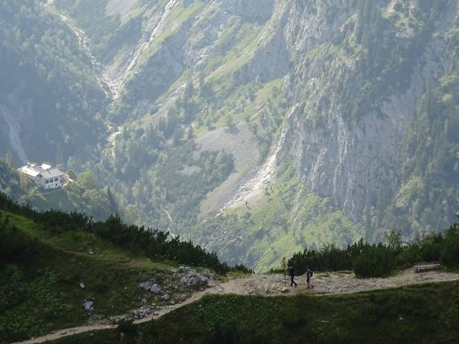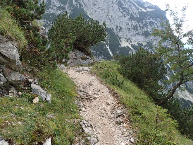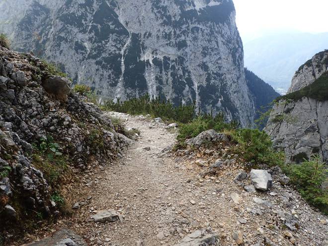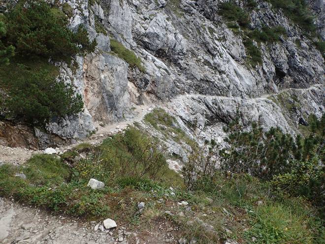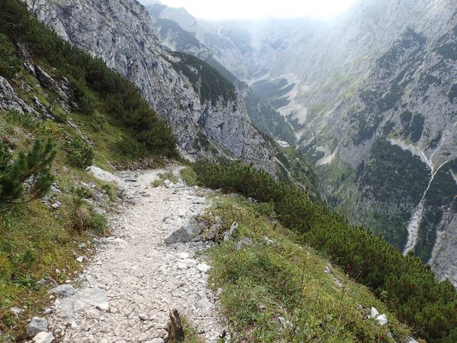 Richtung Knappenhäuser Wie viele Höhenmeter tiefer lag das Höllental gleich noch tiefer als der Weg hier? Wohl noch 500 Meter. Hmmm... so 100 Meter hatte ich 1997 am Kverkfjöll auf Island knapp überlebt. Also besser nicht ausprobieren. |