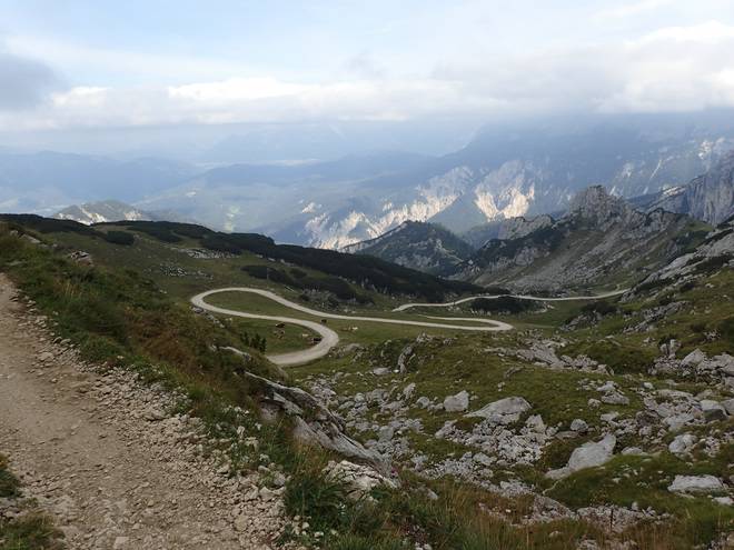 Richtung Längenfelderkopf Ein Serpentinen-Weg unter der Hochalmbahn. |