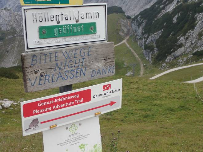 Richtung Knappenhäuser 17.09 Uhr War machten die denn hier? Bis zur letzten Abfahrt der Alpspitzbahn waren es nur 21 Minuten. |