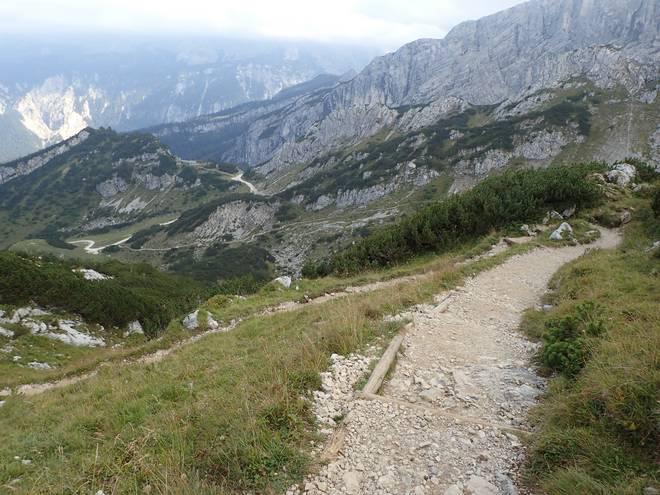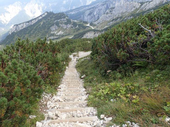 Richtung Hupfleitenjoch Das ging ziemlich steil bergab. Zumindest zum Laufen war es zu steil. |