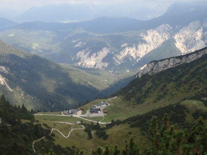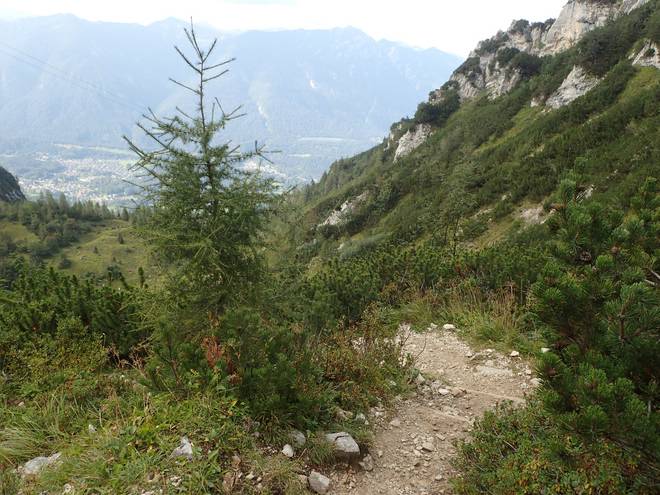Richtung Längenfelderkopf Blick zur Alpspitzbahn. Das dahinter könnte Grainau sein, bin mir aber nicht sicher. |