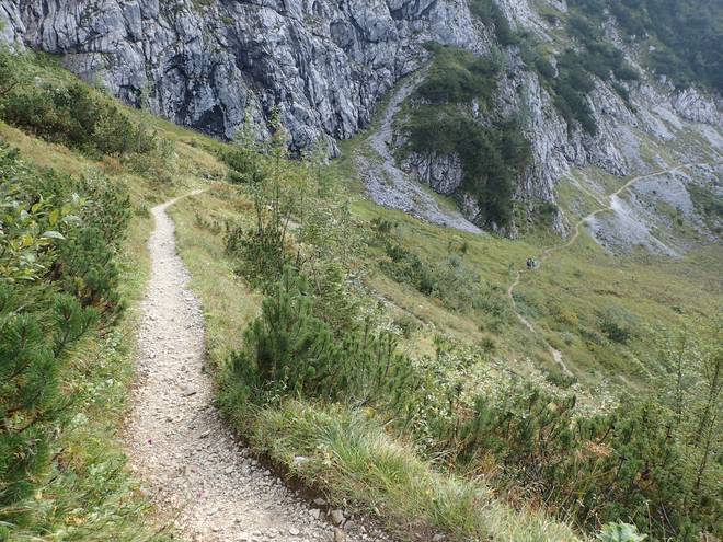 Richtung Hupfleitenjoch Immer wieder gab es kurze flachere Passagen, die ich laufen konnte, aber meist war ich am bergab Gehen. |