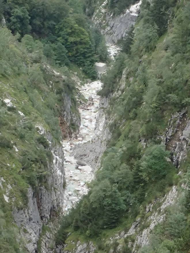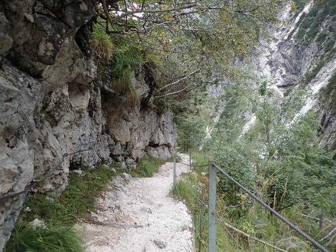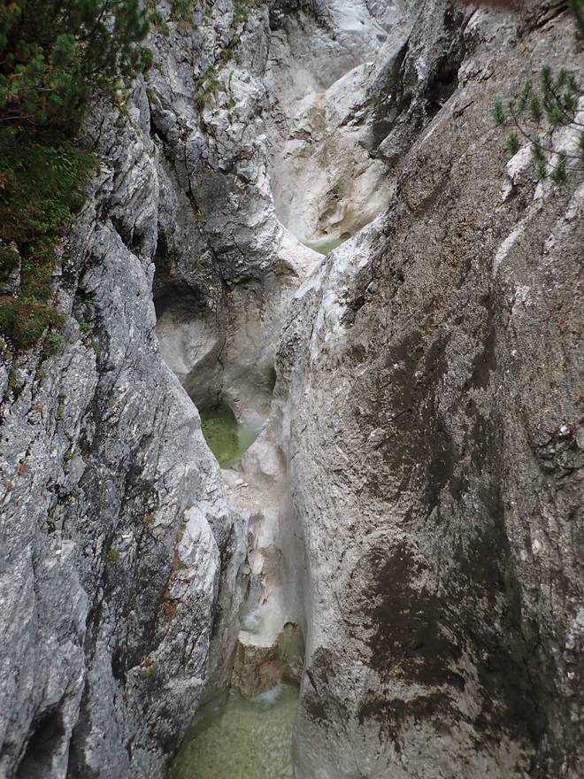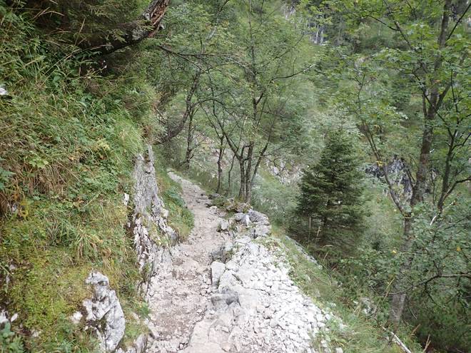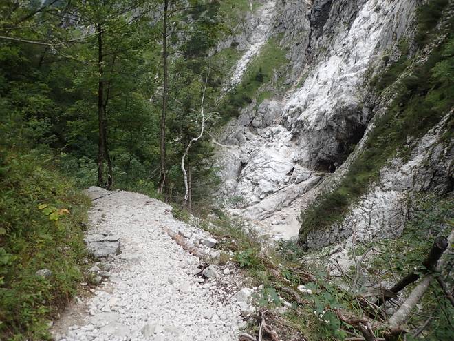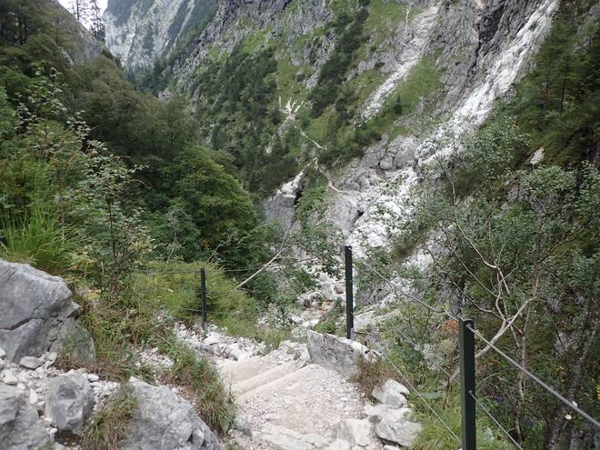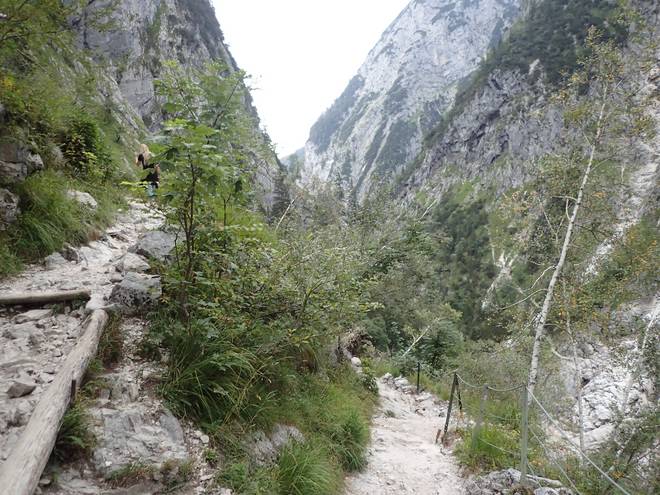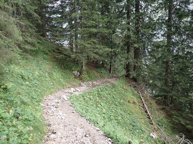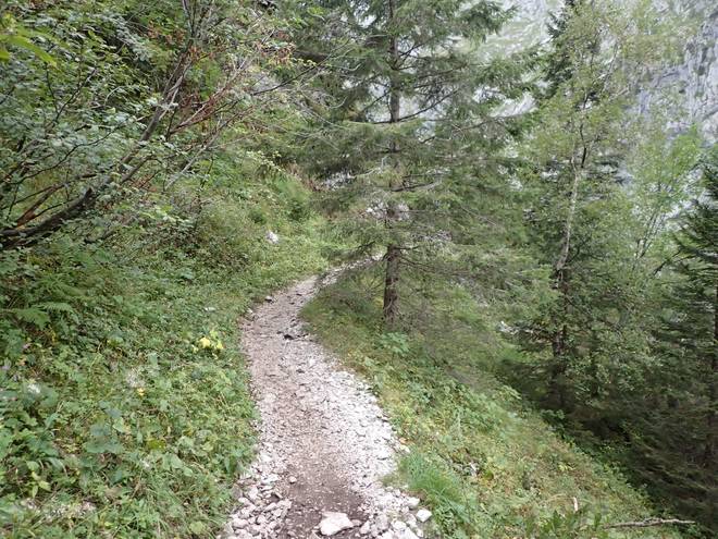 Richtung Höllentalangerhütte Die ersten Bäume auf meiner Strecke. Das würde etwas die Absturzgefahr mindern. |