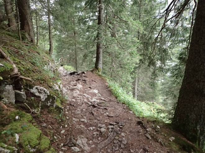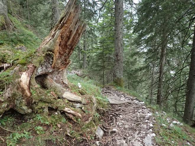 Richtung Höllentalangerhütte Die Baumwurzeln waren auch nicht weniger gefährlich wie zuvor das Geröll. |