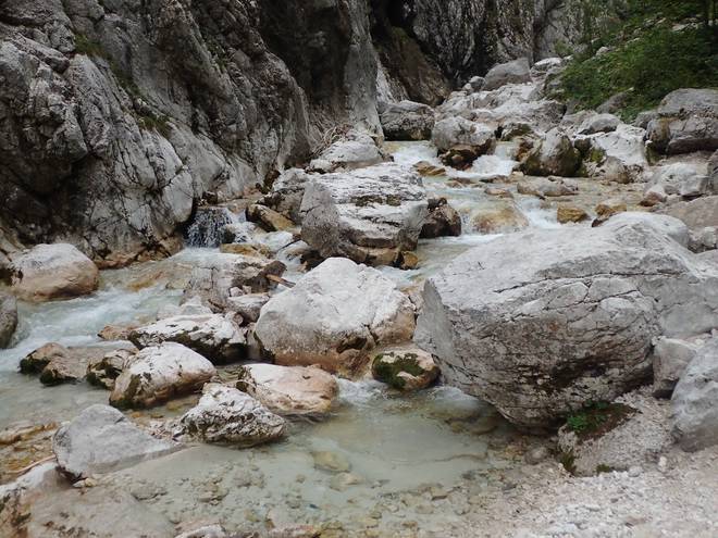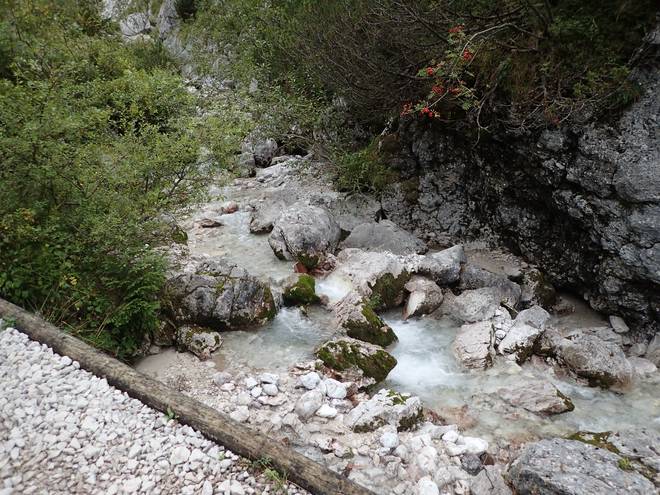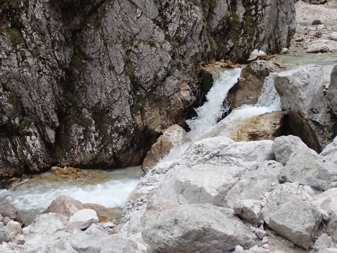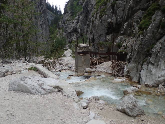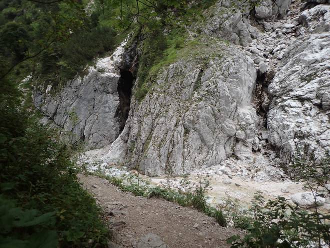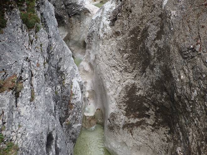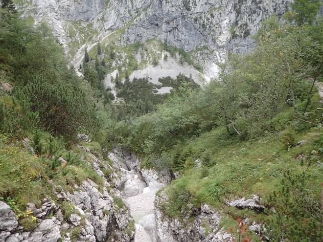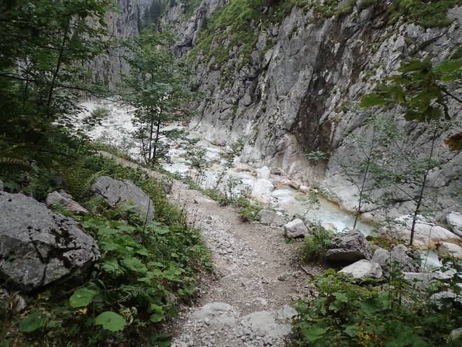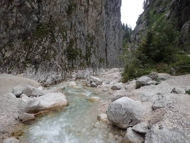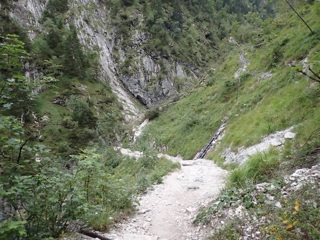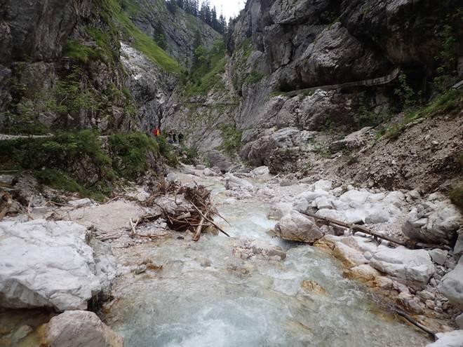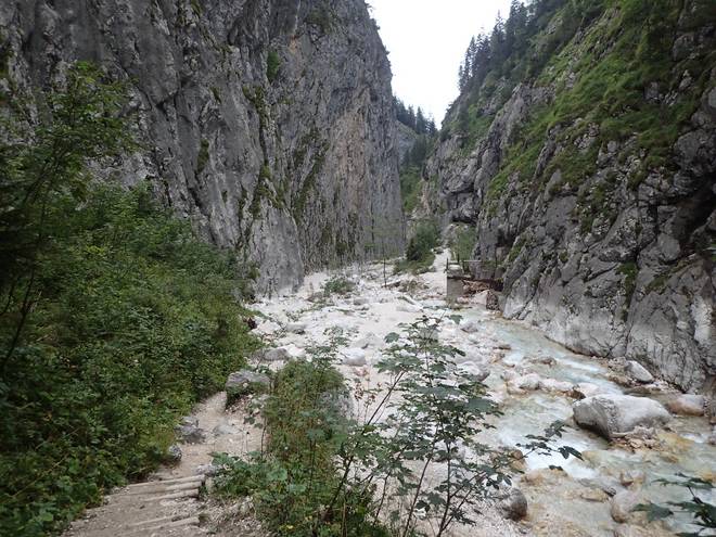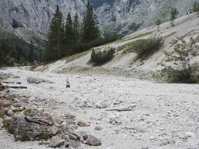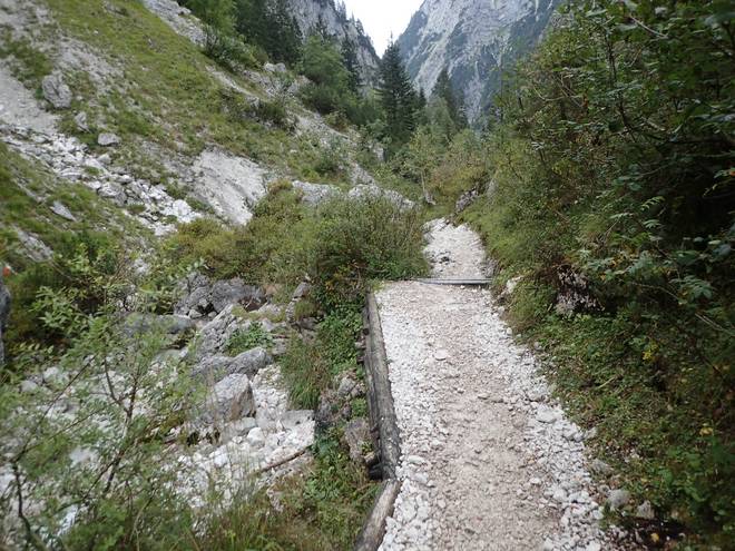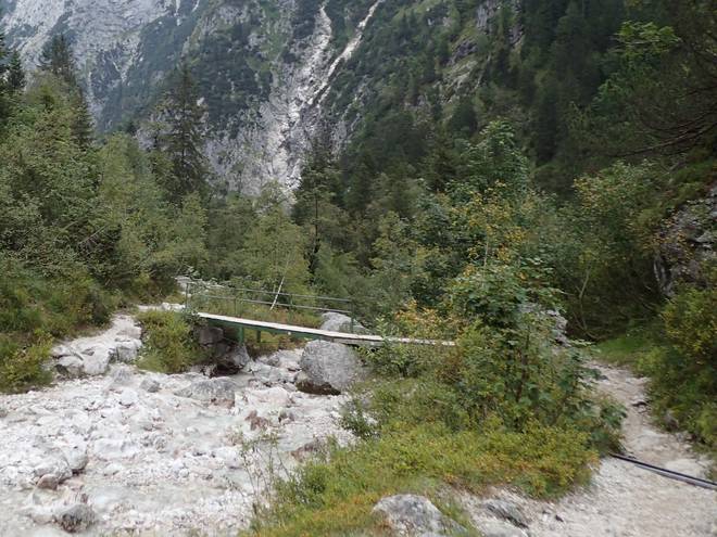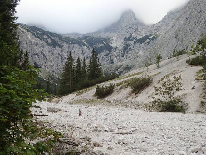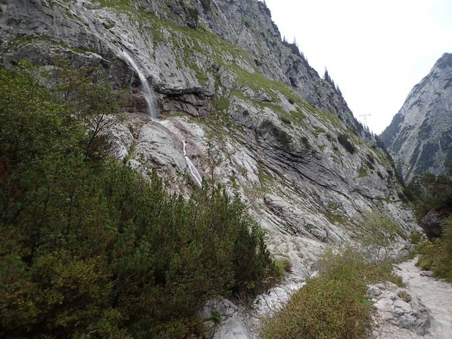 Richtung Höllentalangerhütte Mit mehr Wasser sähe das sicherlich spektakulärer aus. |