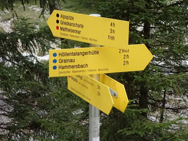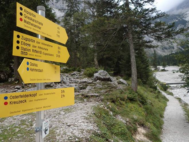 Höllental 18.22 Uhr Nach Hammersbach durch die Höllentalklamm 90 Minuten. Ins 2,2 Kilometer entfernte Grainau aber auch. Ab der Höllentalangerhütte hatte ich aber statt 30 nur 19 Minuten benötgt. |