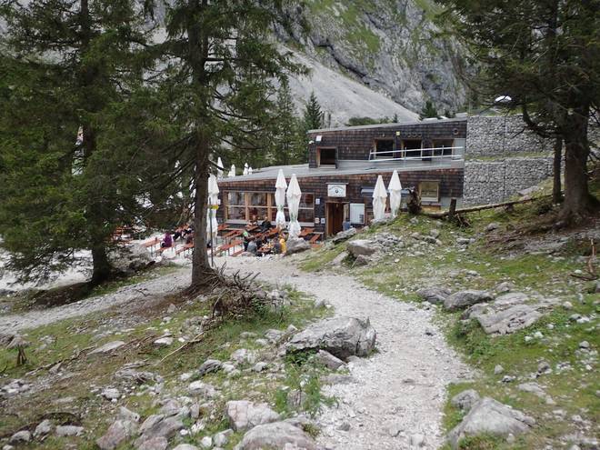 Richtung Höllentalangerhütte 18.02 Uhr Relativ plötzlich kam ich zur Höllentalangerhütte. |