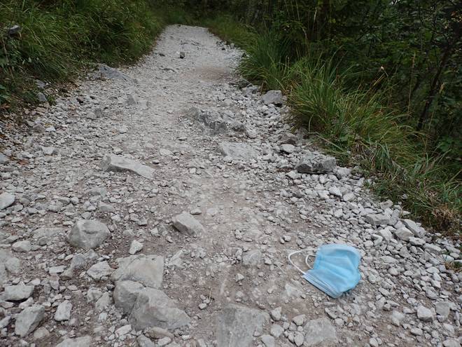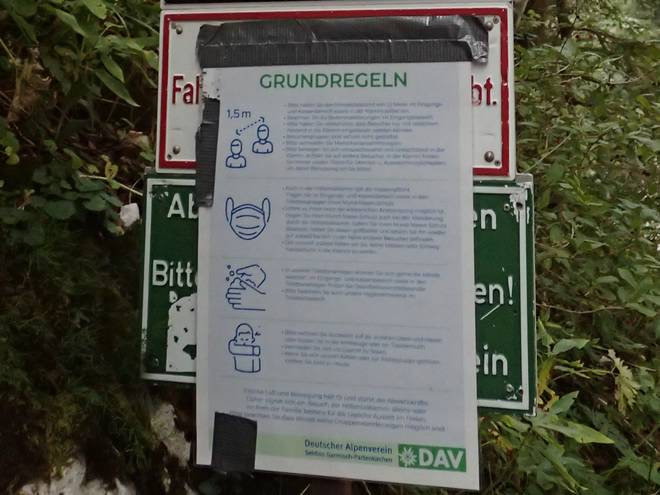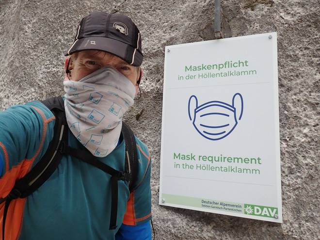 Höllental Oh... die "Zivilisation" kam näher. Auf der Anreise nach Garmisch-Partenkirchen und dann weiter zum AlpspiX und teils auch da oben hatte ich Mund-Nasen-Schutz tragen müssen. Aber sonst war ich davon verschont geblieben. |