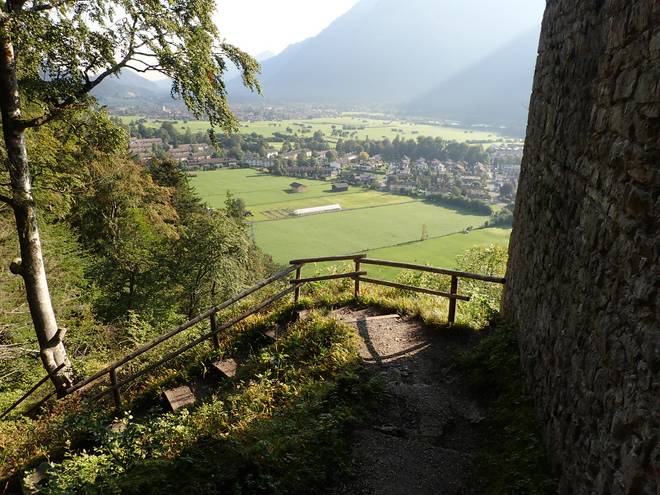 Burgruine Werdenfels Da kam eine ziemlich wirre Treppe mit schönem Blick runter auf Burgrain. |