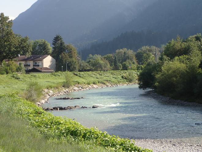 An der Loisach Burgrain Ich erreichte die Loisach. Der würde ich nun bis Garmisch-Partenkirchen folgen. |