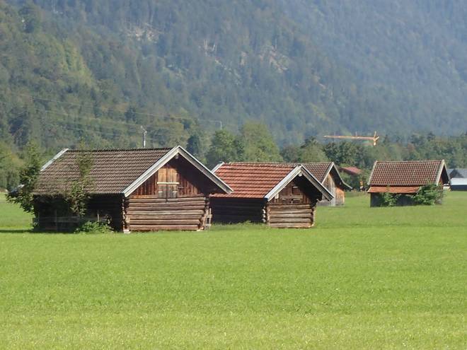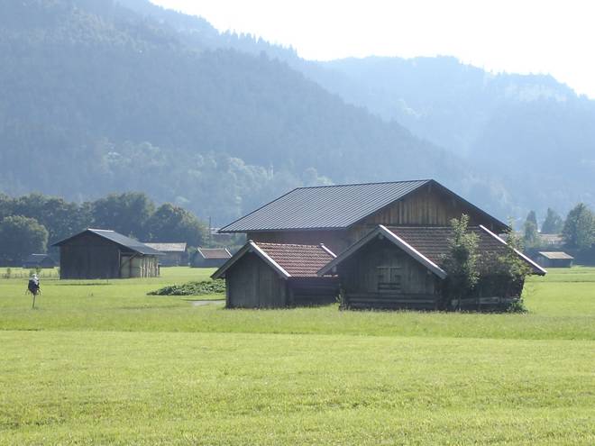 Wiese neben den Kleingärten Schwaigwang Blick auf den Kramerspitz. |