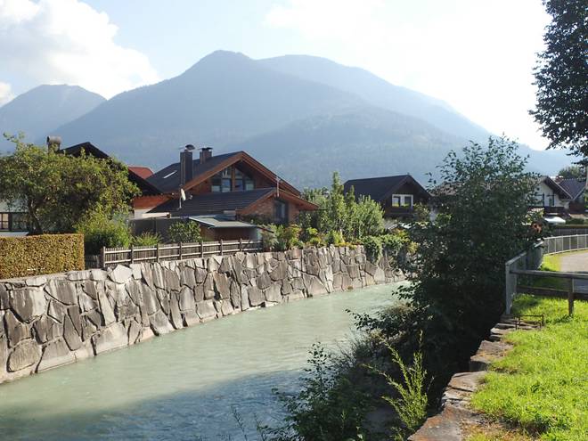 An der Loisach Voraus der Pfarrkirche am Marienplatz und die Alte Pfarrkirche St. Martin. Garmisch-Partenkirchen war nicht mehr weit. |