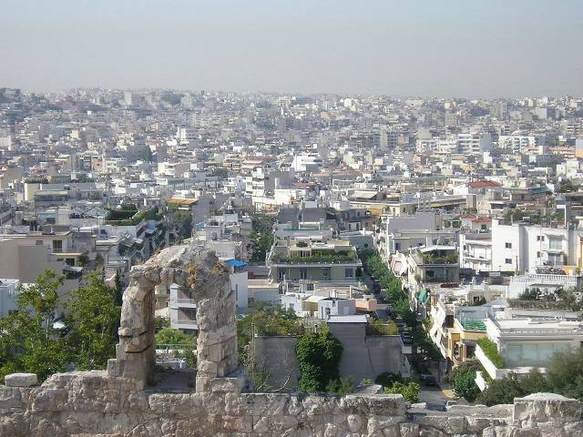Ruinen auf der Akropolis / Nord-Nord-Ost-Blick über Athen / Straße 28. Oktovriou (Patision) |