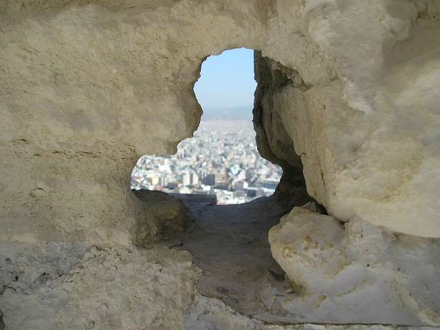 Loch in der Mauer nahe wo früher mal das Heiligtum von Zeus stand. |