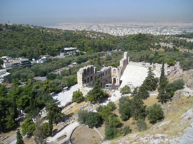 Theatro Irodou Attikou (Odeon des Herodes Atticus)/ Mnimeio Filoppau (Monument von Philopappos (oben rechts)) |