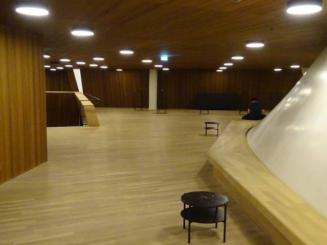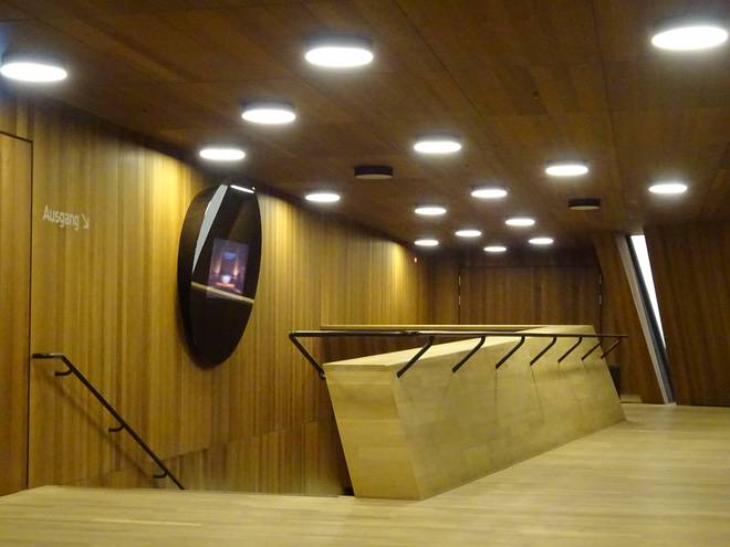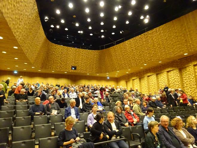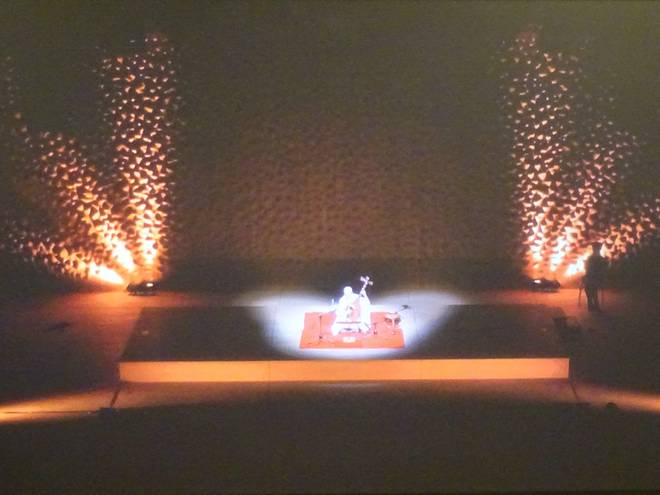 Kleiner Saal Konzert der Lautenpriesterin Kyokuyo Okada. Das Foto ist nicht im Saal entstanden, ich habe es von einem Monitor im Vorraum abfotografiert. Auf Grund von Husten blieb ich in der zweiten Hälfte draußen. |
