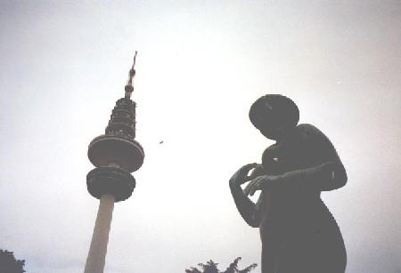 Fernsehturm Heinrich-Hertz-Turm, Figur in Planten un Blomen |