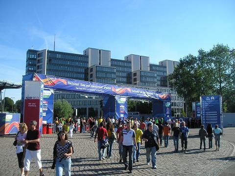 | Allee der Nationen / Riesen-TV-Leinwand im Hintergrund | |