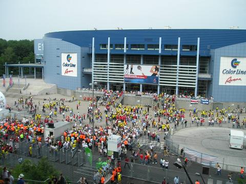 | Blick auf den Kontrollbereich / Color-Line-Arena | |