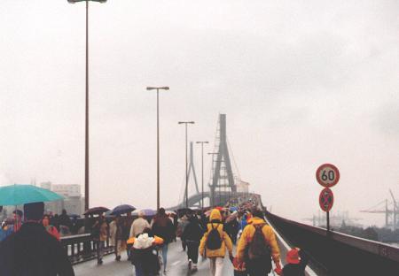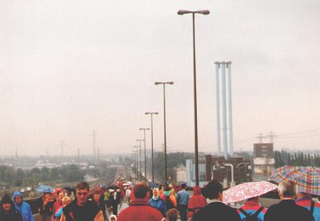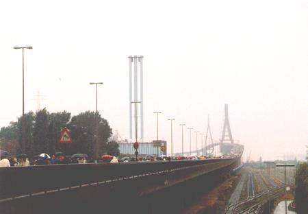 Am 26.09.1999 war sie für einen Tag lang für den Verkehr gesperrt und wie 25 Jahre zuvor konnte man zu Fuß über die Brücke laufen und den fantastischen Ausblick genießen. Mit dem Ausblick klappte es allerdings nicht so gut, weil es in Strömen regnete. Das hielt aber kaum jemanden davon ab, diese einmalige Möglichkeit wahr zu nehmen.